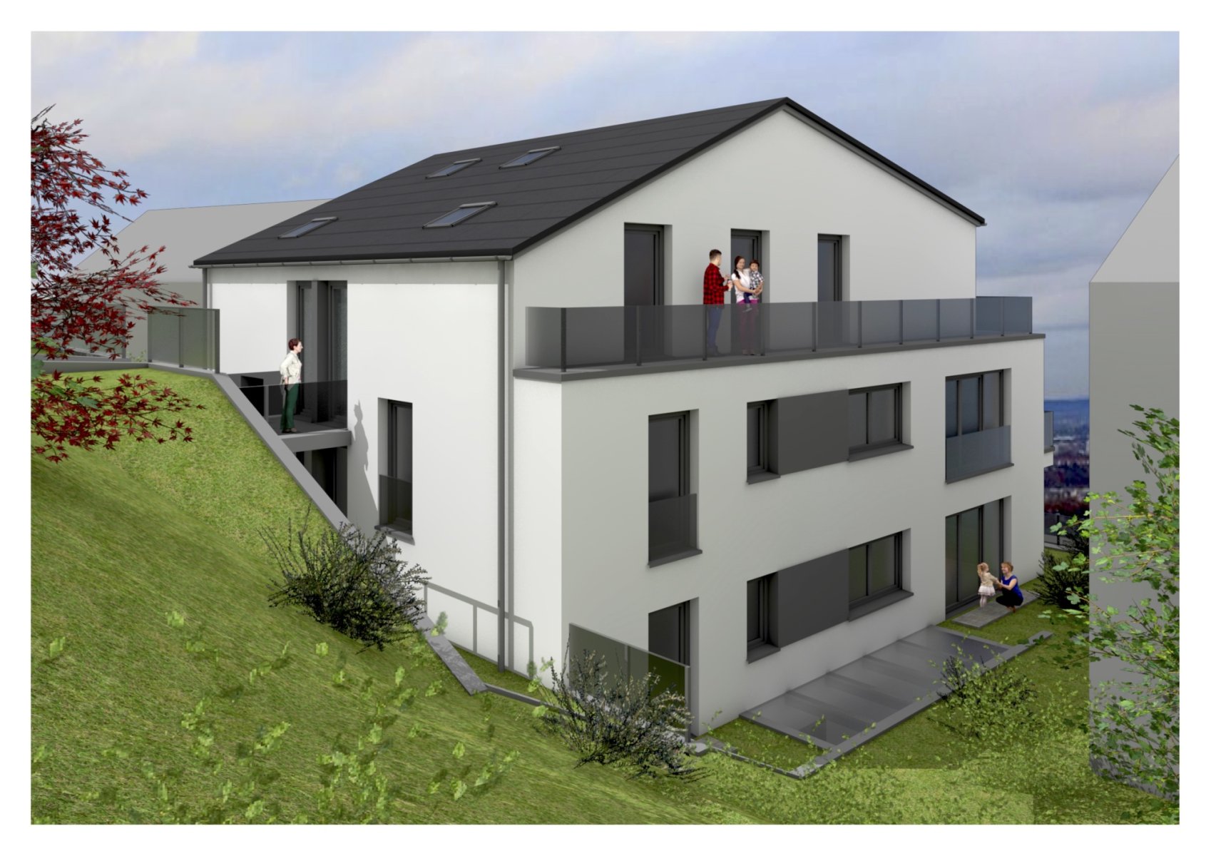 Stuttgart Mehrfamilienhaus Jahr 2023 Bauweise Stahlbeton/Holzständerbau Wohn-/Nutzfläche 800/450 qm Technik Luftwärmepumpe